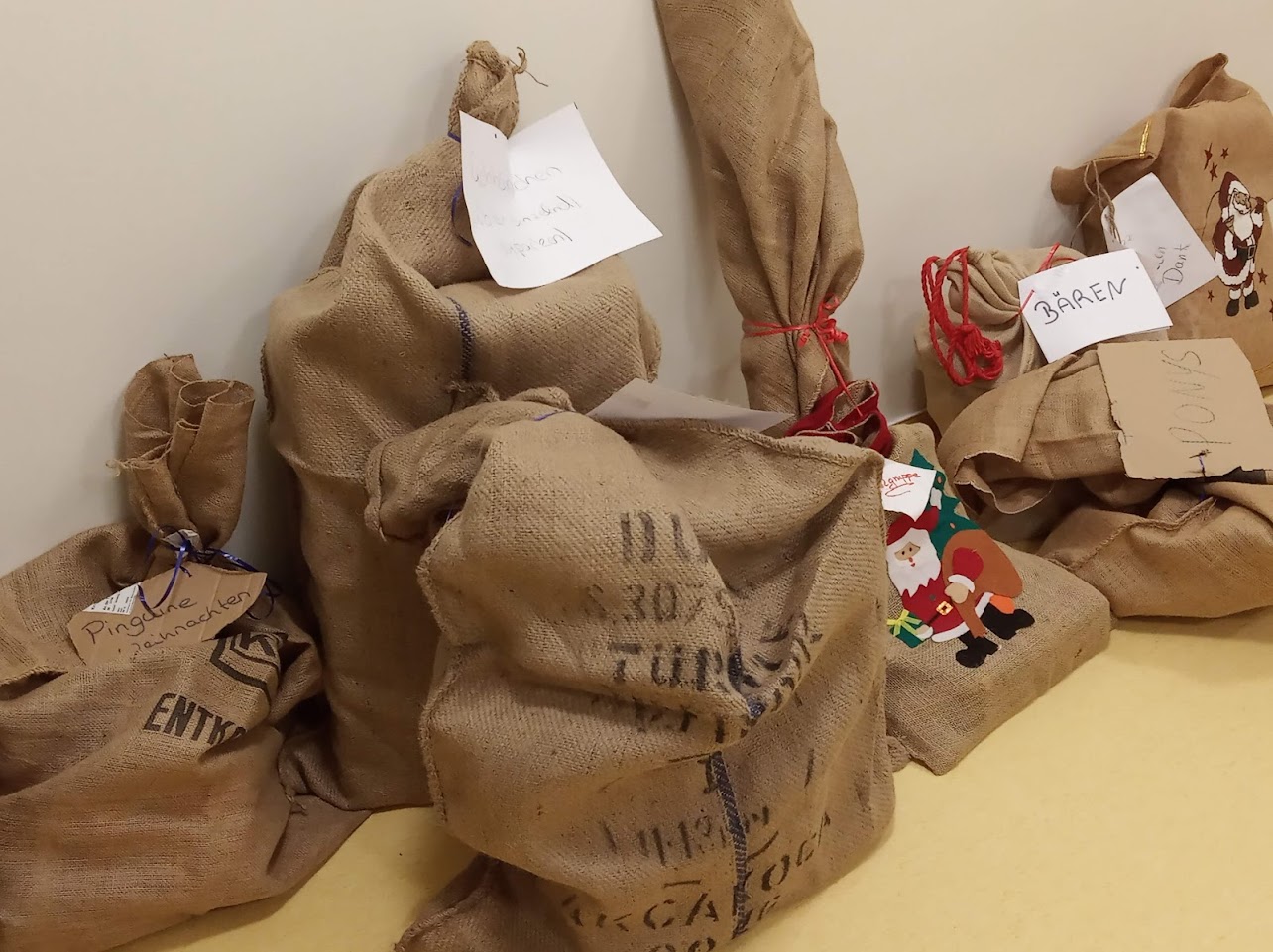 Kurz vor Weihnachten hat dann der Weihnachtsmann, in enger Zusammenarbeit mit dem Förderverein, traditionell Säcke für die einzelnen Gruppen in